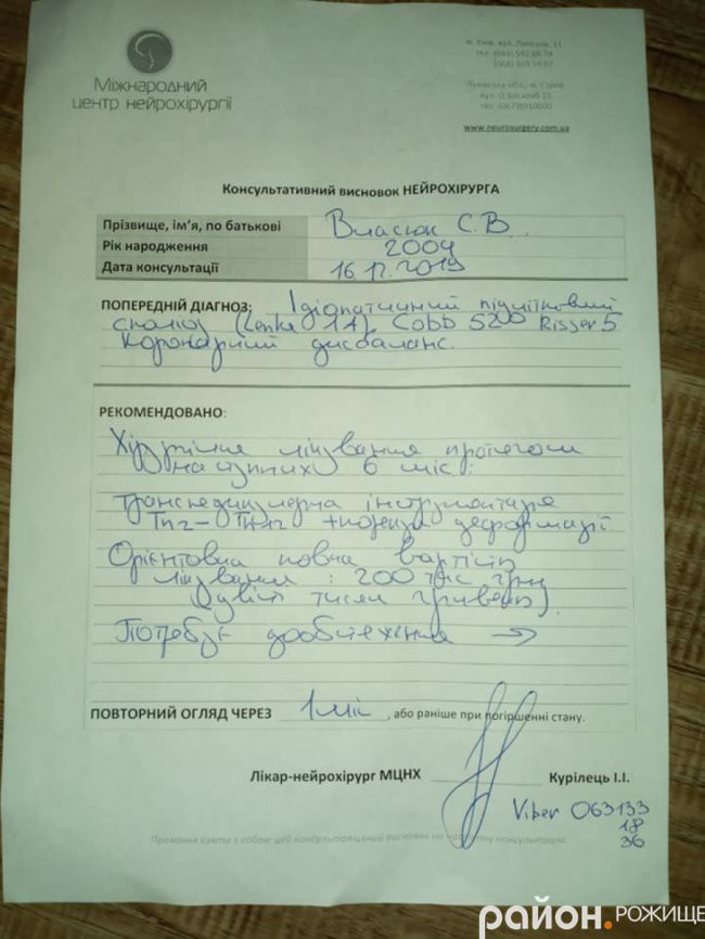 Старша донька Власюк Софія Валеріївна потребує оперативного втручання для лікування четвертої стадії сколіозу. На операцію потрібно понад 200 000 гривень.