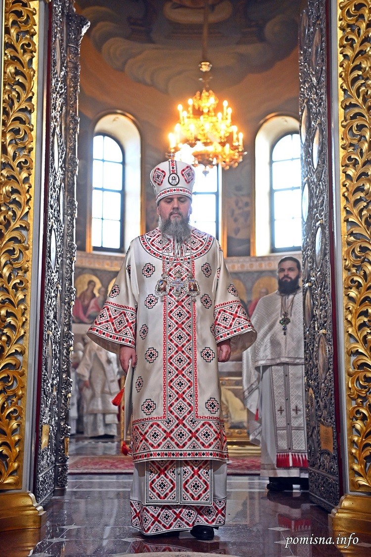 "Тут дійсно присутній певний символізм. І це облачення з українським орнаментом обрано аж ніяк не випадково. Тому що Предстоятель автокефальної Української Православної Церкви вперше звершував Божественну літургію українською мовою у визначній святині українського народу – Успенському соборі Києво-Печерської Лаври".
