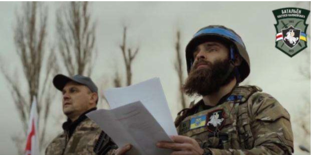 Дослівно: “У цей важливий для білоруської історії день присягу склали добровольці батальйону Кастуся Калиновського. Наш батальйон входить до складу Збройних сил України.