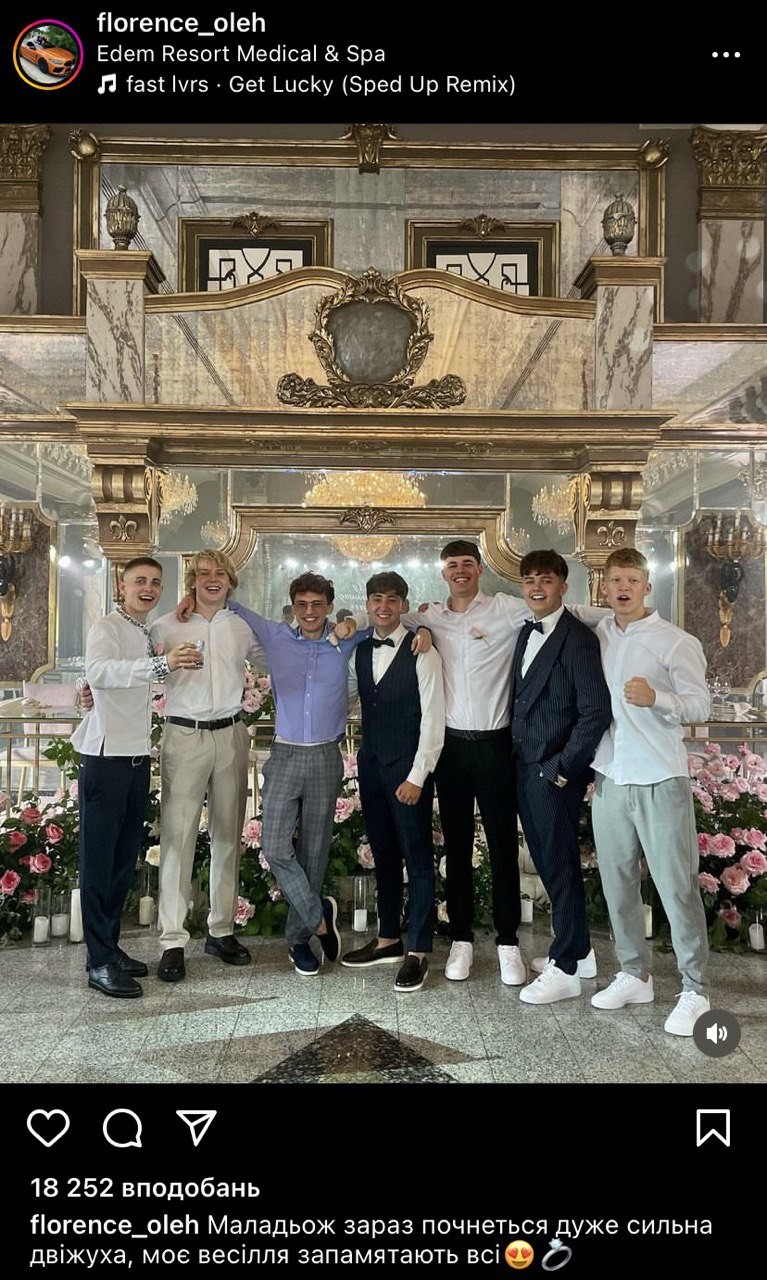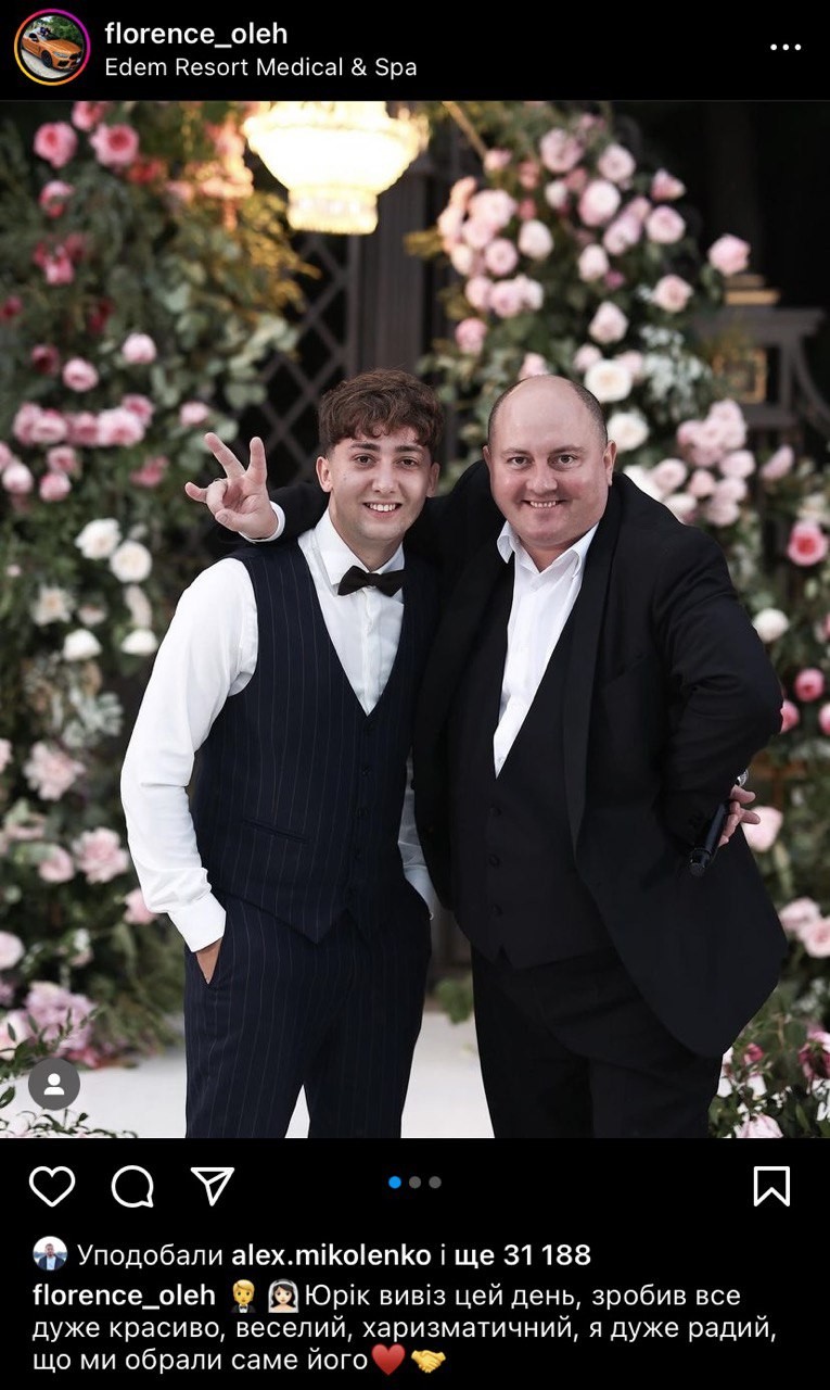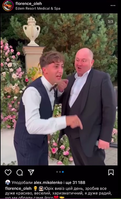 "Приблизно в той самий час в іншому одному з найдорожчих готелів країни Edem Resort Medical & Spa відгуляв своє весілля фігурант гучної історії про блогерів з Івано-Франківська, які влаштовували вечірки в Києві, де, за версією слідства, спаювали дівчат, а потім вчиняли над ними сексуальне насилля, знімали це на відео, поширюючи його в мережі", - написав журналіст у соцмережах, підкріпивши до своє публікації світлини з весілля учасника скандальної вечірки.