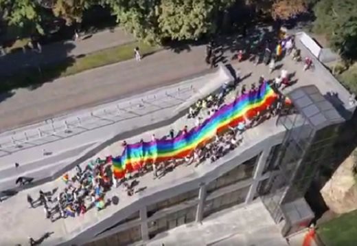 Участников марша сопровождают полицейские, которые выстроили кордон между ними и сторонниками традиционных семейных ценностей. Оппоненты людей с радужными флагами пытались помешать проведению шествия. Между двумя сторонами периодически возникают словесные перепалки.