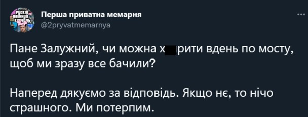І жартівливо питають головнокомандувача Залужного ЗСУ, чи можна подібні атаки робити вдень, щоб було все видно.