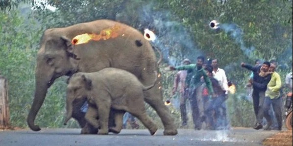 Моторошні кадри. В Індії слониху зі слоненям закидали палаючими гілками