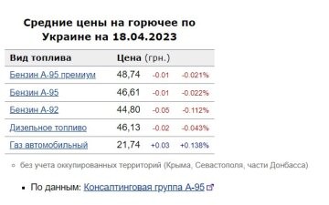 А ось бензин А-95 преміум та А-95 знизилися в ціні на 1 копійку, склавши 48,74 грн/л та 46,61 грн/л відповідно.