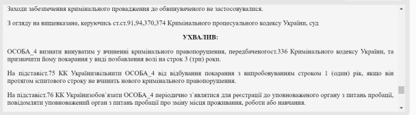 Суд визнав чоловіка винним за ст. 336 Кримінального кодексу України та засудив до 3 років позбавлення волі, замінивши реальний термін на 1 рік іспитового.