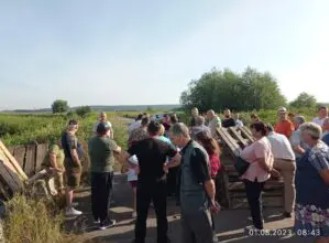 Як видно з фото, люди перекривали дорогу прихильникам московської церкви дерев’яними піддонами.