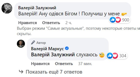 Майже відразу під цим постом з’явився коментар Головнокомандувача Збройних Сил України Валерія Залужного.