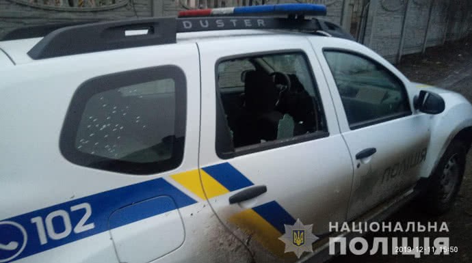 Внаслідок стрілянини пошкоджено службовий автомобіль. Поліцейські не травмовані .