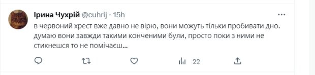 "Нічого дивовижного. Ще раз організація-нікчемність пробиває дно", "Не здивована", у червоний хрест уже давно не вірю, вони можуть лише пробивати дно. Думаю вони завжди такими кінч*ними були, просто поки з ними не зіткнешся, то не помічаєш...", - написали в коментарях.