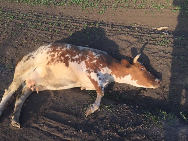 "Хтось прив'язав корову до трактора, і вона бігла, поки не знесилилась і не впала. Шкіра обдерта, роги підірвані від ланцюга, на якому її тягнули. Далі, мабуть, ланцюг порвався і тварина залишилась лежати", — розповів син власниці корови.