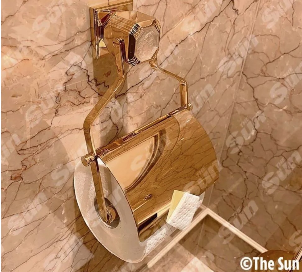 Суперяхта прикрашена несмачними золотими утримувачами для рулонів туалетного паперу. У вітальні можна побачити рояль та м'які дивани.