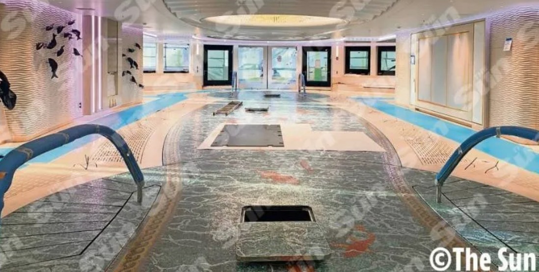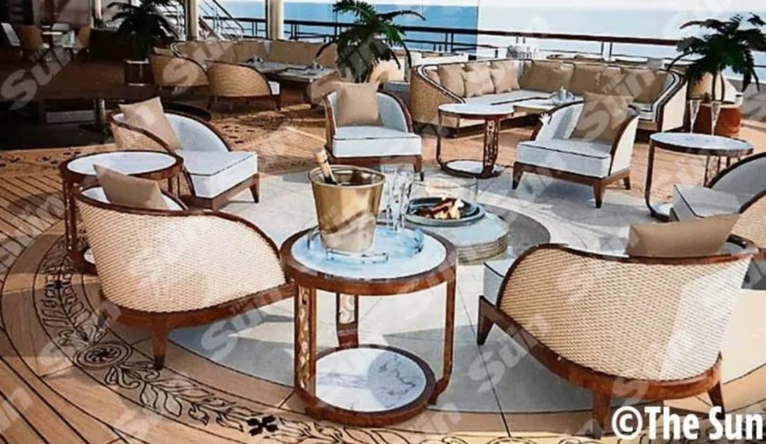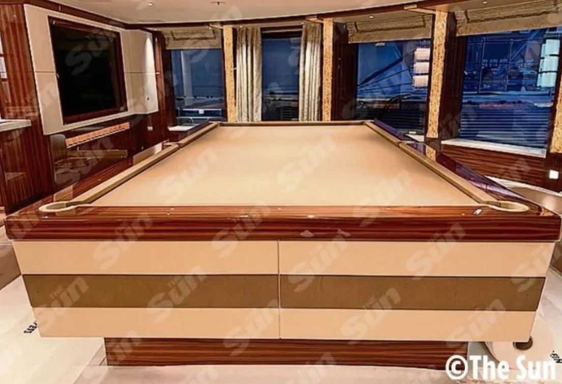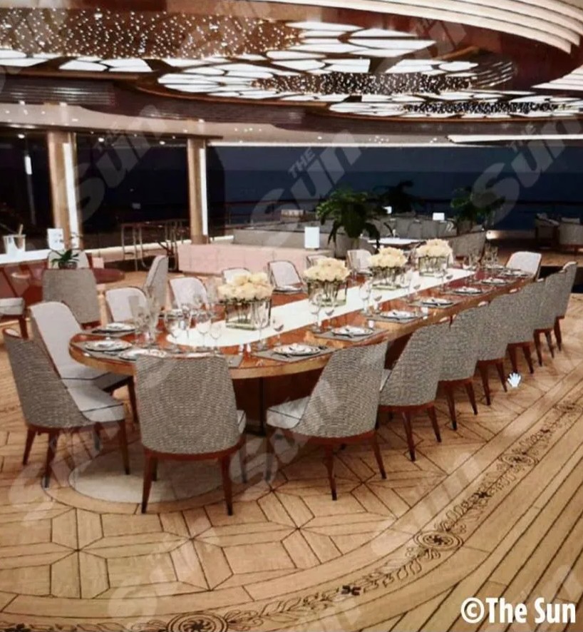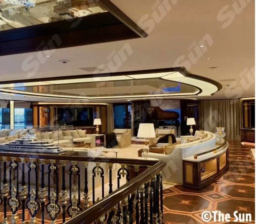 У вітальні можна побачити рояль та м'які дивани. Викладений плиткою танцпол перетворюється на басейн. Знімки, отримані The Sun, показують шість палуб непристойної розкоші та нудотної надмірності.