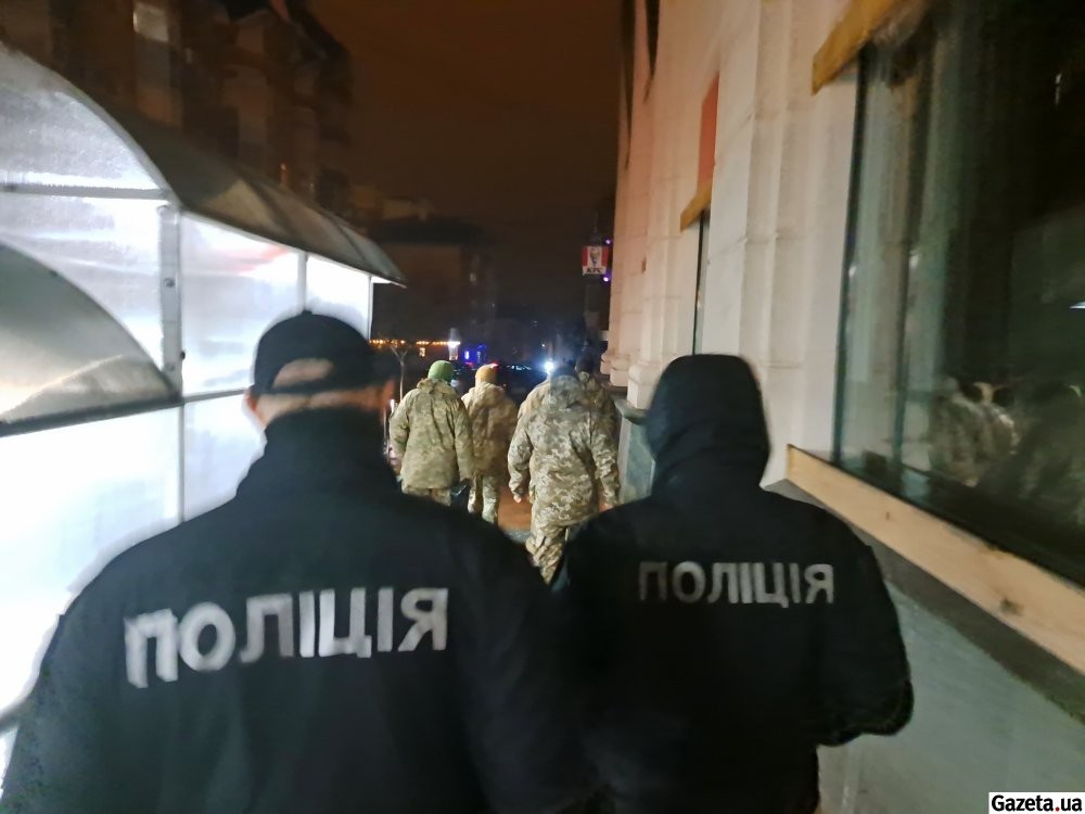 Близько 21:00 біля закладу “ІЗІ” на вул. Котляревського, 1 у центрі міста зібралися майже два десятка чоловіків та жінок у формі. Мета – перевірка документів у відвідувачів закладу, роз’яснювальна робота щодо мобілізаційних заходів, вручення повісток військовозобов’язаним чоловікам.