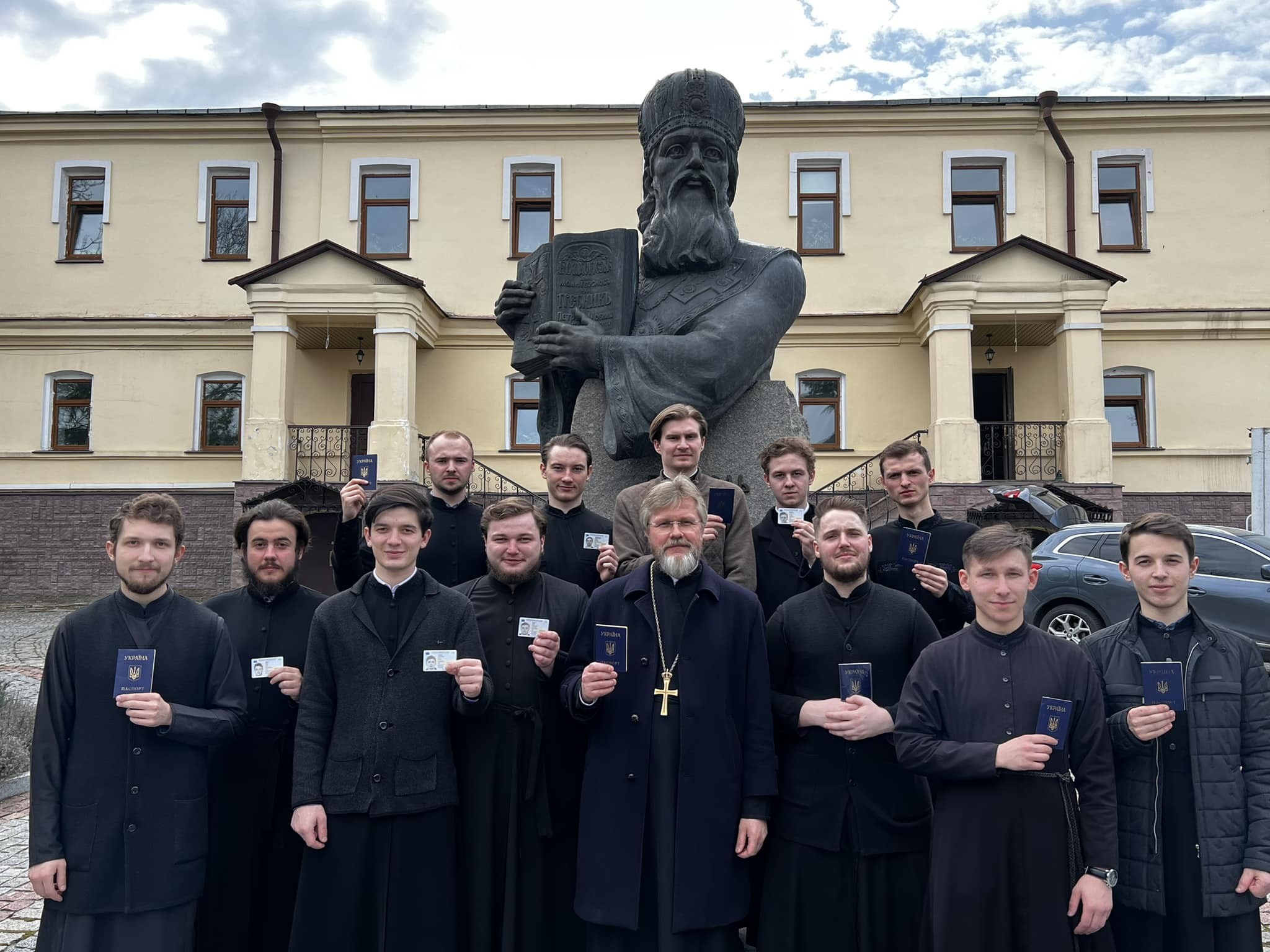 «Ось які «московські попи» навчають в Лаврі «московських» студентів. І ось яке «російське духовенство» чи «московський патріархат» Міністерство культури України хоче вигнати з Лаври», – написав Данилевич під фото, де усі семінаристи та він тримають в руках українські паспорти.