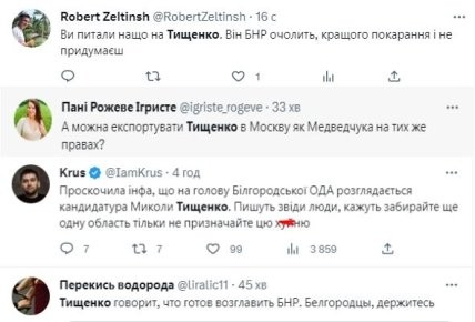 Так на подію відреагував нардеп Микола Тищенко, який заявив, що не проти очолити “Бєлгородську народну республіку”.