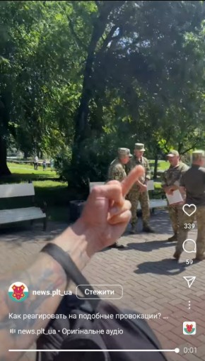У Полтаві молодий чоловік провокував на конфлікт українських військових. Він грубив їм та заявив, що наші захисники "вбивають людей за гроші", чого сам він робити не хоче.