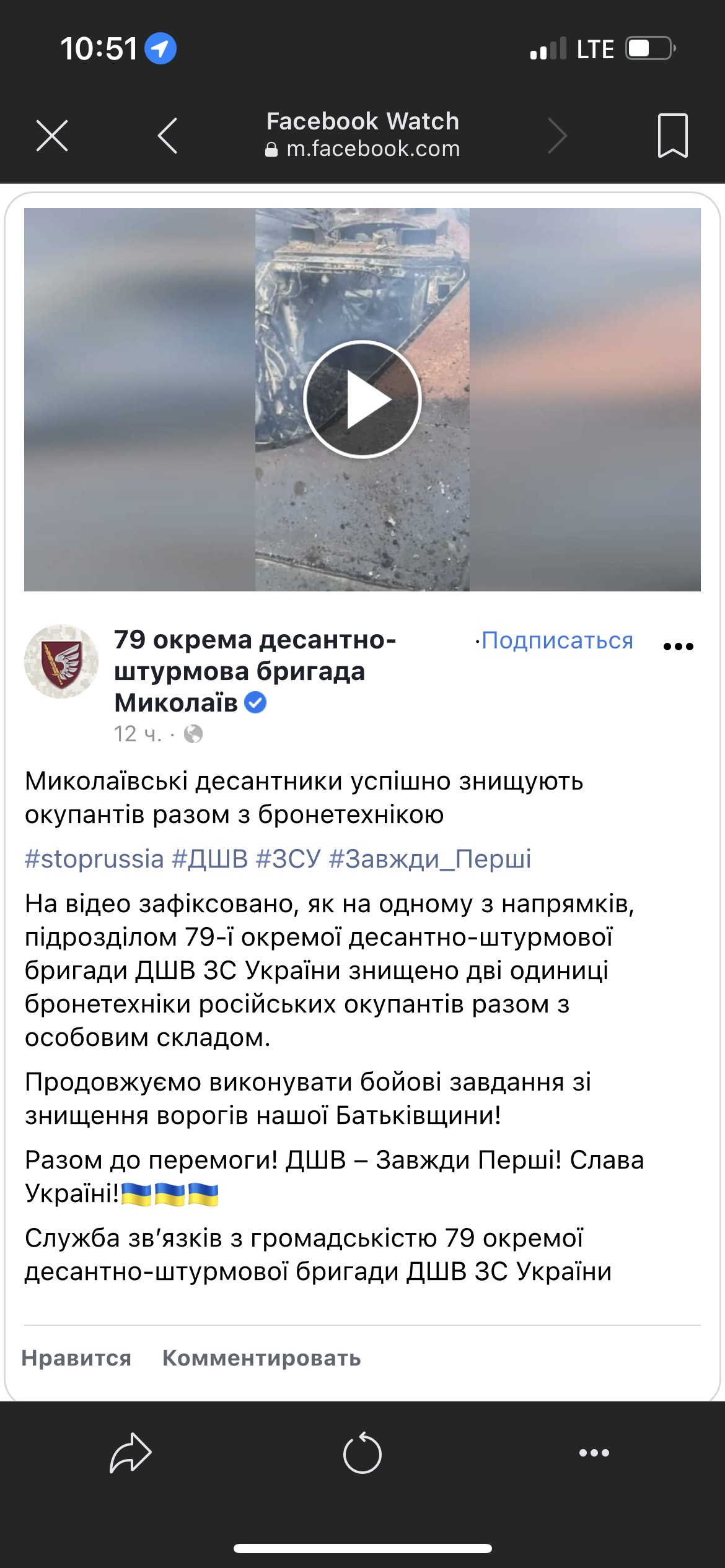 У ролику зафіксовано, як на одному з напрямків підрозділом 79-ї ОДШБр було знищено дві одиниці бронетехніки військових путінської армії разом із особовим складом.