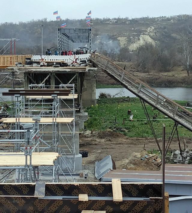 Зазначений КУНГ стояв перед самим провалом підірваного моста. Тепер же представники «ЛНР» прибрали його, ймовірно, щоб він не заважав будівельникам.