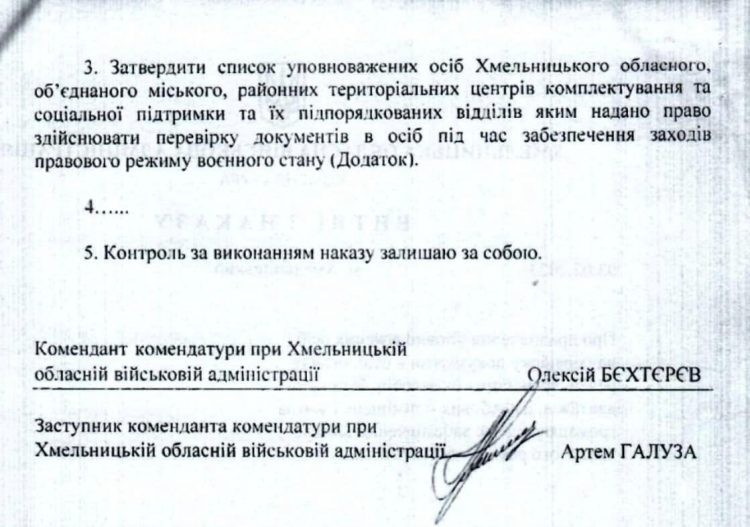 Відповідний витяг з наказу комендатури Хмельницької обласної військової адміністрації опублікувала пресслужба Хмельницького ТЦК та СП.