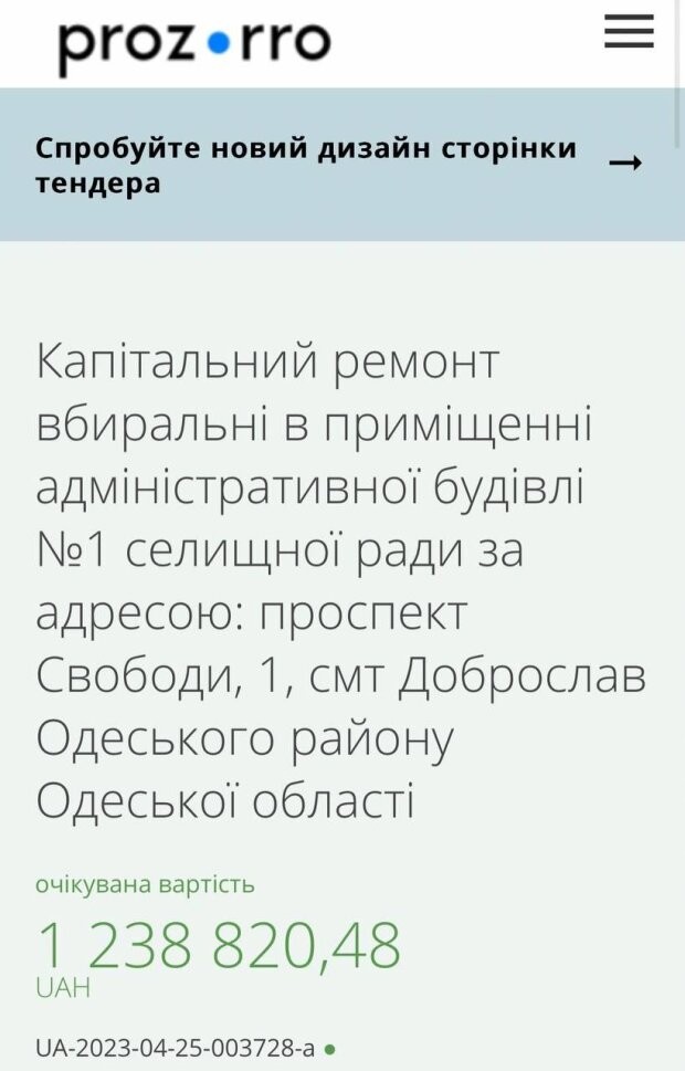 Замовником послуг виступила Доброславська селищна рада. Роботи повинні закінчити до кінця поточного року. Виконавцем послуг став ФОП, Грабовенко Валерій Абрамович. Але як виявилося це не одна обурлива закупівля послуг. Навесні 2023 року, Доброславська селищна рада відремонтувала туалет за понад 1, 2 мільйони гривень. Тоді, на сторінці ради опублікували пояснення, навіщо було витрачати гроші в новий туалет.