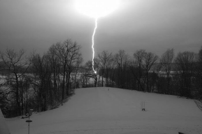 Під час рясного снігопаду вдарила блискавка.